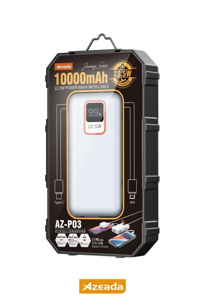 Azeada AZ-P03 22,5W 10000mAh Power Bank Dahili Kablolu