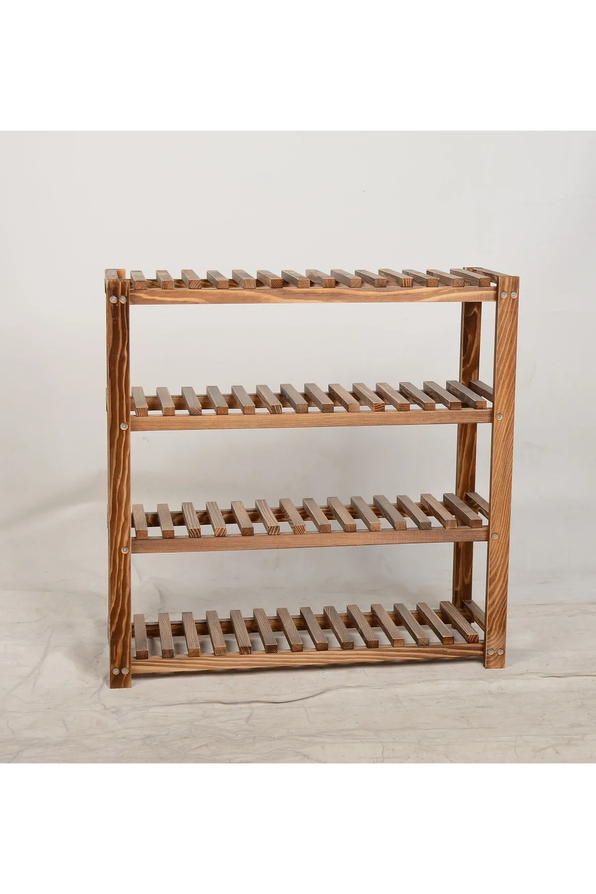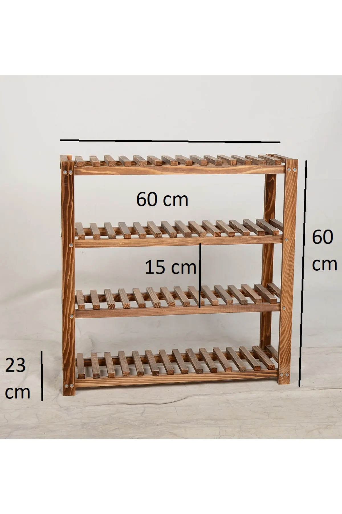 🪵 Wooden City 4 Katlı Masif Ahşap Ayakkabılık – 60×60 cm